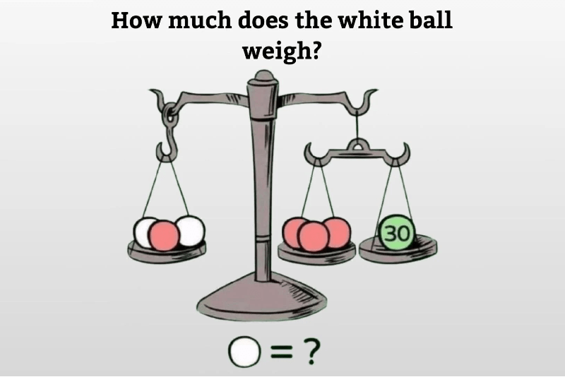 it is obvious that on small scale 3R=30, so R ball weighs 10